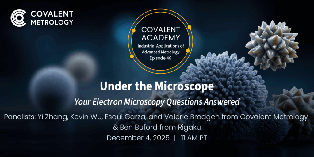 This interactive webinar is your opportunity to explore the fascinating world of electron microscopy (EM) with Covalent’s experienced scientists who solve complex challenges every day. Whether you are a seasoned microscopist or just getting started, you will gain practical insights and fresh perspectives from real-world problem solving in the lab.